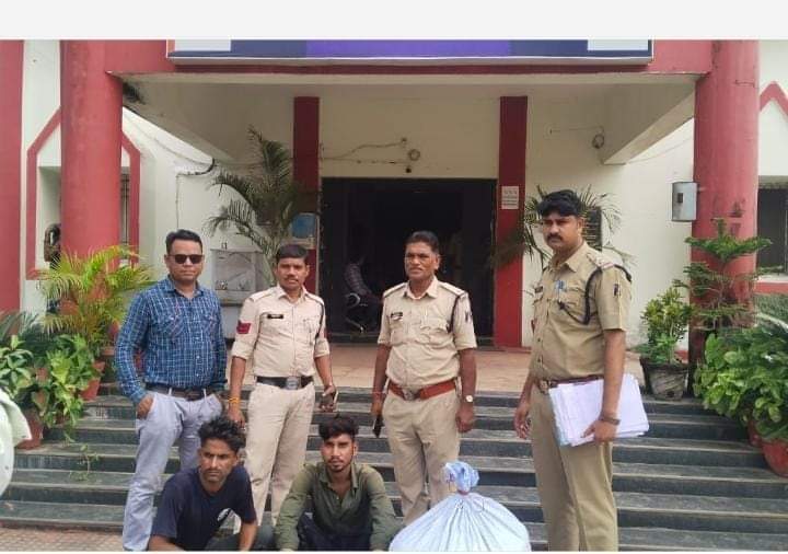 महासमुंद-दिनांक 29/09/2023 को टाउन पेट्रोलिंग के दौरान बस स्टैण्ड बसना के पास दो व्यक्ति पुलिस वाहन को देखकर अपने पास में रखे नीला/आसमानी रंग के प्लास्टिक बोरी को दोनो व्यक्ति हाथ में पकडकर अंधेरे में लुकने छुपने का प्रयास कर रहे थे जिसे घेराबंदी कर पकडा गया।
