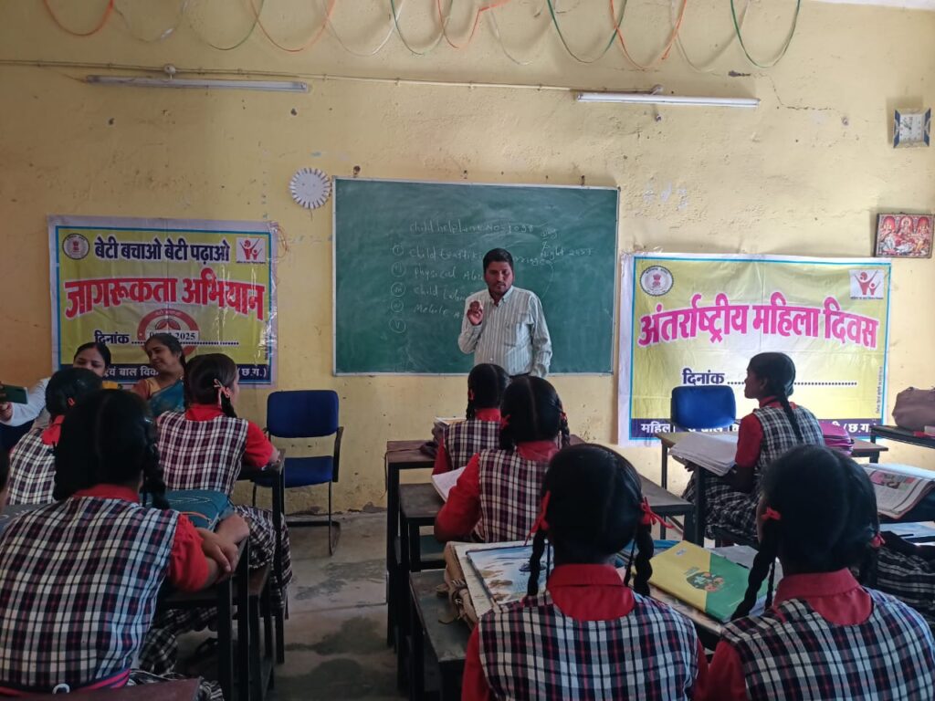 तिजराम साहू ब्यूरो मुंगेली अन्तर्राष्ट्रीय महिला दिवस के अवसर पर 24 फरवरी 2025 से 08 मार्च 2025 तक बेटी बचाओ बेटी पढ़ाओ योजना के अन्तर्गत लिंग आधारित भ्रूण हत्या को रोकने बालिकाओं की सुरक्षा सुनिश्चत तथा उनकी शिक्षा को बढ़ावा देने के लिए जिला कार्यक्रम अधिकारी श्रीमती संजुला शर्मा के निर्देशानुसार जिला स्तर पर विभिन्न कार्यक्रम चलाए जा रहे है। इस अवसर पर दिनांक 07 व 08 मार्च को नवीन शास. महाविद्यालय जरहागांव, शास. हायर सेकेण्डरी स्कूल जरहागांव, शास. माध्य. शाला सुरेठा, शास. हाई स्कूल सुरेठा, शास. प्राथ. शाला बरईदरहा आवास में संरक्षण अधिकारी श्रीमती सीतामणी कच्छप, श्री लक्ष्मीनारायण सोनवानी एवं सखी वन स्टॉप सेंटर की केन्द्र प्रशासक सुश्री सुनीता दादवानी के द्वारा बच्चों को गुड टच बैड टच, बच्चों की सुरक्षा, चाइल्ड हेल्प लाइन 1098 एवं सखी वन स्टॉप सेंटर, महिला हेल्प लाइन 181 के संबंध में जानकारी दी गई। इस अवसर पर ‘बेटी बचाओ बेटी पढ़ाओ’ अभियान पर बल दिया गया तथा जन सामान्य में जागरूकता लाने के लिए शपथ कार्यक्रम का आयोजन किया गया एवं रैली निकाली गयी। इस अवसर पर प्रार्चाय नन्दिनी तिवारी, श्री नेतराम कुर्रे, श्रीमती शशि प्रभा सोनी, श्रीमती दीप्ती उपाध्याय एवं अन्य शिक्षकगण उपस्थित रहे ।