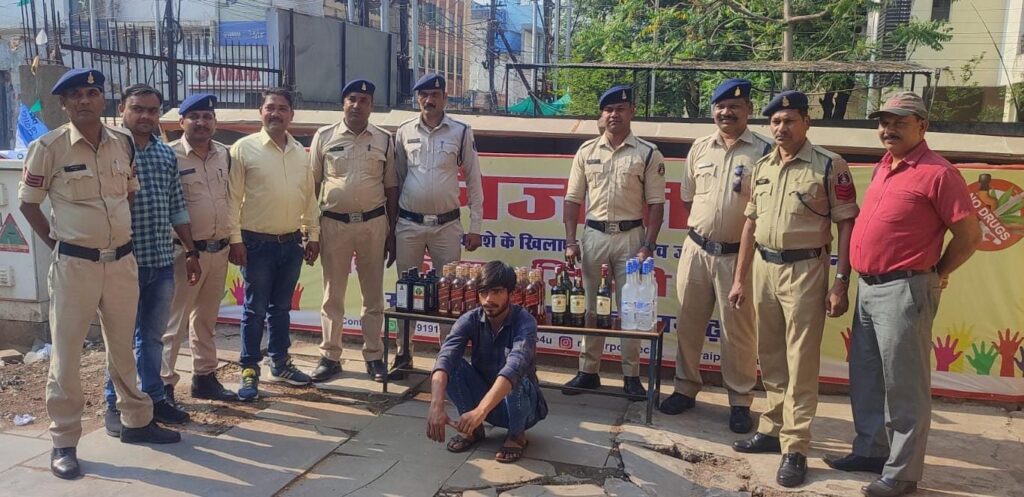 रायपुर – वरिष्ठ पुलिस अधीक्षक महोदय श्री संतोष कुमार सिंह के दिशा निर्देशन पर रायपुर पुलिस द्वारा अवैध नशा के विरुद्ध विशेष अभियान *निजात* चलाया जा रहा है। अतिरिक्त पुलिस अधीक्षक (शहर) श्री लखन पटले के मार्गदर्शन एवं नगर पुलिस अधीक्षक (कोतवाली) श्री योगेश साहू के पर्यवेक्षण में लगातार चेकिंग कार्यवाही की जा रही है। दिनांक 22.04.2024 को थाना मौदहापारा को सूचना प्राप्त हुई कि चारपहिया वाहन सवार एक व्यक्ति अपने वाहन में अवैध रूप से शराब लेकर जयस्तंभ चौक की ओर से आ रहा है। जिस पर अतिरिक्त पुलिस अधीक्षक शहर श्री लखन पटले एवं नगर पुलिस अधीक्षक कोतवाली श्री योगेश साहू द्वारा आरोपी को शराब के साथ रंगे हाथ पकड़ने निर्देशित किया गया। जिस पर थाना प्रभारी मौदहापारा के नेेतृत्व में थाना मौदहापारा पुलिस टीम द्वारा वाहन को पकड़ने हेतु जयस्तंभ चौक में नाकेबंदी पाईंट लगाया गया। इसी दौरान पुलिस टीम के सदस्यों द्वारा वाहन को आता देख रूकवाने का प्रयास करने पर वाहन का चालक वाहन को तेज गति से चलाते हुए के.के.रोड की ओर भागने लगा, कि पुलिस टीम के सदस्यों द्वारा वाहन का पीछा कर दौड़ाकर घेराबंदी कर वाहन को के.के. रोड स्थित कबाडी चौक पास पकड़ा गया। वाहन में एक व्यक्ति सवार था जिसने पूछताछ में अपना नाम ओम प्रथम दुबे निवासी कोटा थाना सरस्वती नगर रायपुर होना बताया गया। टीम के सदस्यों द्वारा उसके वाहन की तलाशी लेने पर वाहन की डिक्की में अंग्रेजी शराब रखा होना पाया गया। शराब परिवहन करने/रखने के संबंध में ओम प्रथम दुबे से वैध दस्तावेज की मांग करने पर उसके द्वारा किसी प्रकार का कोई दस्तावेज प्रस्तुत न कर टीम के सदस्यों को लगातार गुमराह करने का प्रयास किया जा रहा था। जिस पर आरोपी ओमप्रथम दुबे को गिरफ्तार कर उसके कब्जे से अलग-अलग ब्रान्ड के कुल 41 बॉटल अंग्रेजी शराब एवं शराब परिवहन में प्रयुक्त चारपहिया वाहन क्रमांक सी जी/04/एन आर/6239 जुमला कीमती लगभग 6,50,000/- रूपये जप्त कर आरोपी के विरूद्ध थाना मौदहापारा मंे अपराध क्रमांक 148/24 धारा 34(2) आबकारी एक्ट का अपराध पंजीबद्ध कर कार्यवाही किया गया।