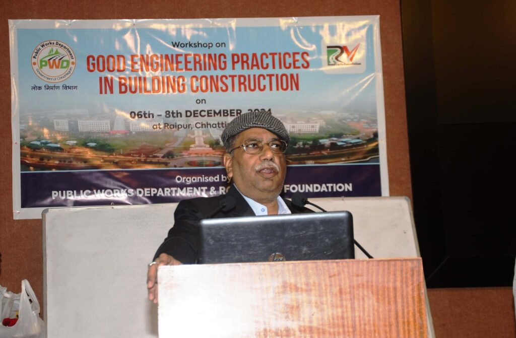 लोक निर्माण विभाग के अभियंताओं को विभिन्न प्रशिक्षण सत्रों में रोडवार्ता फाउंडेशन के मुख्य प्रबंध निदेशक श्री आई.के. पाण्डेय, नया रायपुर अटल नगर विकास प्राधिकरण के प्रमुख अभियंता श्री सलिल श्रीवास्तव, क्रांकीट विशेषज्ञ एवं वैज्ञानिक श्री सतन्दर कुमार, क्रांकीट विशेषज्ञ श्री सुरेश कुमार और बिल्डिंग स्ट्रक्चर विशेषज्ञ श्री समीर पाण्डेय ने ‘गुड इंजीनियरिंग प्रेक्टिसेस इन बिल्डिंग कन्सट्रक्शन’ के विभिन्न आयामों पर विस्तार से जानकारी दी। उन्होंने भवन निर्माण और मरम्मत के कार्यों में उपयोग हो रहे नए तकनीकों और मशीनरी के बारे में भी बताया।