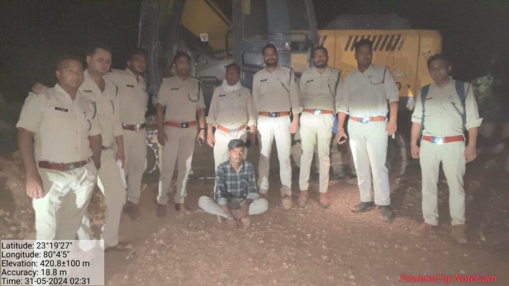 जानकारी अनुसार मुख्य वन संरक्षक मध्य वन वृत्त जबलपुर कमल अरोरा, वनमण्डलाधिकारी ऋषि मिश्रा, उपवनमंडलाधिकारी सिहोरा एम एल बरकडे के लगातार अवैध गतिविधियों व वन अपराधों के रोकथाम सम्बन्धी निर्देशों एवं मार्गदर्शन के अंतर्गत देर रात मुखबिर की सूचना पर वन परिक्षेत्र अधिकारी पनागर सौरभ शर्मा के दिशा निर्देशन पर परिक्षेत्र पनागर टीम द्वारा परिक्षेत्र पनागर अंतर्गत सुरमावाह बीट अंतर्गत PF 360 तथा नारंगी क्षेत्र 0- 403 के अंदर पत्थर का अवैध उत्खनन करते हुए एक पोकलेन चेसिस सीरियल नम्बर N601D05282, मॉडल नम्बर – R210-7 को मौके पर लगभग रात 2 बजे ड्राइवर पकड़ा गया। पोकलेन को जब्त कर वनरक्षक आवास छत्तरपुर पनागर में लाकर खड़ा कर दिया गया है। वाहन मालिक तथा अन्य संलिप्त लोगों की तलाश जारी है।