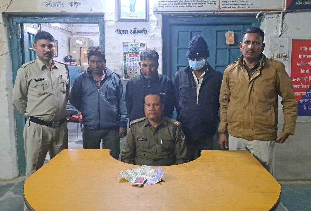 आशीष कश्यप बिलासपुर के अपराध क्रमांक 36/ 24 धारा 3(2 )छत्तीसगढ़ जुआ( प्रतिषेध )अधिनियम 2022 के प्रकरण में जुआड़ीयान 01. प्रकाश केशरी पिता भगवती प्रसाद केसरी उम्र 61 वर्ष निवासी दयालबंद 02.बजरंग नरेश पिता किशोरी नरेश उम्र 44 वर्ष निवासी दयालबंद 01. अरविंद गोले पिता स्नेही गोले उम्र 44 वर्ष निवासी दयालबंद के द्वारा नयापारा दयालबंद में अवैध रूप से जुआ खेलते पाए जाने पर जुगाड़ियों के कब्जे से कुल 5620 रुपये , 52 पत्ती ताश एवं एक बोरी का पट्टी को जप्त कर विधिवत कार्यवाही किया गया है