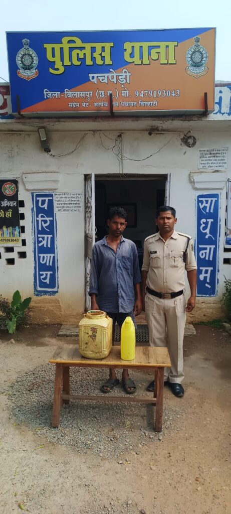 निर्देशित करने पर,अनुविभागीय पुलिस अधीक्षक मुख्यालय श्री उदयन बेहार के मार्गदर्शन में आज दिनाक 2/११/२३ को मुखबिर की सूचना के आधार पर थाना पचपेड़ी द्वारा टीम बनाकर रेड कार्रवाही कर ग्राम सुकुलकारी में राजेश महिलांगे के घर में उसके कब्जे से अवैध कच्ची महुआ शराब कुल मात्रा 20 लीटर किमती 4000 रुपए को जप्त कर उक्त आरोपी के विरुद्ध धारा 34 (२)आबकारी एक्ट के अंतर्गत कार्यवाही कर आरोपी को गिरफ्तार कर न्यायिक रिमांड जेल भेजा गया।