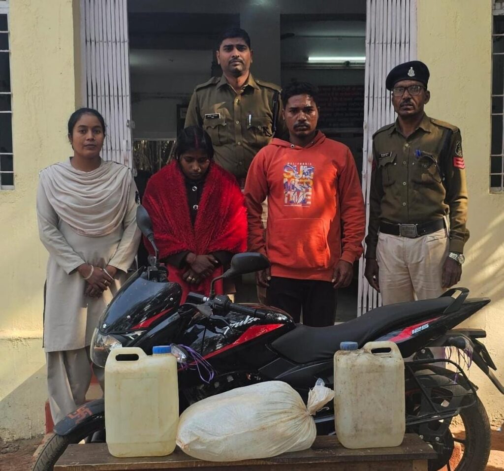 आशीष कश्यप बिलासपुर :-पुलिस अधीक्षक महोदय जिला बिलासपुर श्री रजनेश सिंह के द्वारा लगातार अवैध नशे के विरुद्ध कड़ी कार्रवाई करने का निर्देश दिया गया है। नशे से समाज को मुक्त करने पुलिस अधीक्षक महोदय द्वारा *चेतना* जनजागरुकता अभियान भी संचालित किया जा रहा है। इसी परिप्रेक्ष्य में दिनांक 05.12.2024 को थाना सीपत के द्वारा रात्रि में पेट्रोलिंग हेतु रवाना हुआ था कि जरिये मुखबीर से सूचना मिली कि एक व्यक्ति और एक महिला अपने मोटर सायकल पल्सर में कच्ची महुआ षराब भारी मात्रा में रखकर ग्राम खैरा डगनिया की ओर जा रहा है। सूचना पर सीपत थाना प्रभारी टीम द्वारा तत्काल रेड कार्यवाही किया गया। जहां सिकंदर उर्फ राजा वर्मा एवं पायल वर्मा निवासी भिल्मी थाना सीपत जिला बिलासपुर छ.ग. के कब्जे से 1. 40 लीटर देषी महुआ कच्ची शराब कीमती 4000 रूपये 2. मो.सा. पल्सर क्रमांक सीजी 10 बी डब्लू 1605 को जप्त कर कब्जा पुलिस लिया गया है। आरोपी और आरोपिया के विरुद्ध वजह सबूत के आधार पर अपराध पंजीबद्ध कर धारा 34(2), 59(क) आबकारी एक्ट के तहत् कार्यवाही कर गिरफ्तार कर न्यायिक रिमांड पर भेजा गया है।