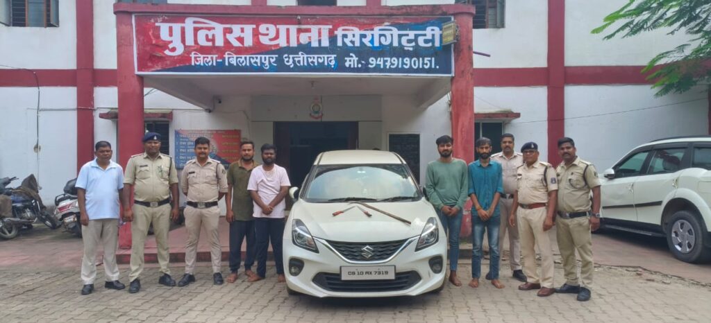 आशीष कश्यप बिलासपुर :-मामले का संक्षिप्त विवरण इस प्रकार है कि पुलिस अधीक्षक महोदय बिलासपुर श्री रजनेश सिंह द्वारा बिलासपुर जिले मे ‘‘आपरेशन प्रहार‘‘ अभियान के तहत् शहर मे हो रही घटनाओ को रोकने हेतु लगातार निर्देश दिया गया था परिपालन मे दिनांक 09.10.2024 को मुखबीर से सूचना मिला बाजार चैक यदुनंदन नगर तिफरा मे कुछ व्यक्ति सफेद रंग के बलेनो कार मे आकर चौक मे कार को खडी कर हाथ मे तलवार व चाकू रखकर लहराते हुये आने जाने वाले लोगो का डरा धमका रहे है कि सूचना पर थाना सिरगिटटी पुलिस द्वारा तत्काल मौके पर पहुच कर आरोपीयों को घेराबंदी कर पकडा गया तथा आरोपियो के कब्जे से एक सफेद रंग की बलेनो कार व 02 नग चाकू व 01 नग लोहे का तलवार जप्त कर आरोपियो के विरुद्ध आम्र्स एक्ट के तहत कार्यवाही कर न्यायिक रिमाण्ड पर माननीय न्यायालय पेश किया गया है। आगे भी अवैध गतिविधियों पर कार्यवाही जारी रहेगी।