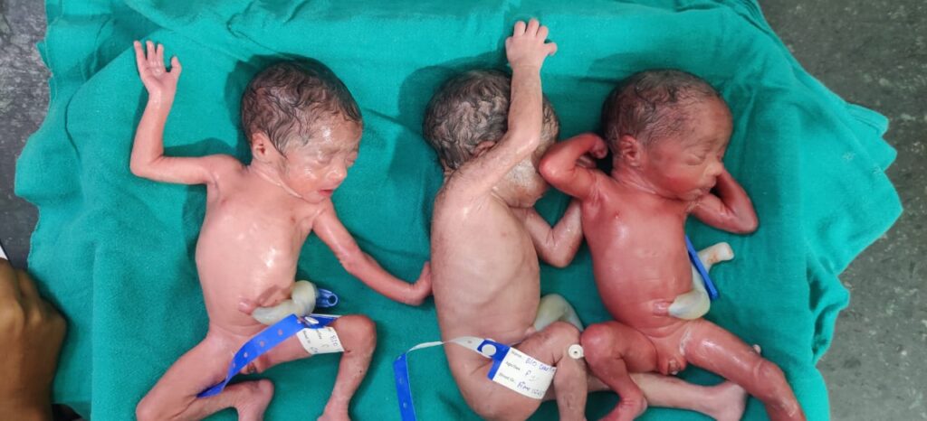 मनोज साहू ब्यूरो जांजगीर चांपा जांजगीर के जिला अस्पताल में उस समय खुशी का माहौल छा गया जब पामगढ़ ब्लॉक के ग्राम कमरीद निवासी ललिता रात्रे ने एक साथ तीन बच्चियों को जन्म दिया। खास बात यह रही कि मां और तीनों बच्चियां पूरी तरह स्वस्थ हैं। जानकारी के अनुसार, ललिता रात्रे की सफल डिलीवरी 3 डॉक्टरों की टीम ने मिलकर की। पूर्व में ललिता की दो बच्चियां पहले से ही हैं, और अब तीन बच्चियों के जन्म के बाद परिवार में हर्ष का माहौल है।