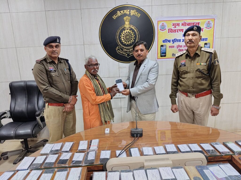 *आईजीपी (IGP) दुर्ग रेंज, दुर्ग श्री राम गोपाल गर्ग (IPS) के निर्देशन पर एसएसपी बेमेतरा श्री रामकृष्ण साहू (IPS) द्वारा ‘‘CEIR पोर्टल के माध्यम से अभियान चलाकर बरामद मोबाईल को उनके मालिको को किया गया सुपुर्द।*