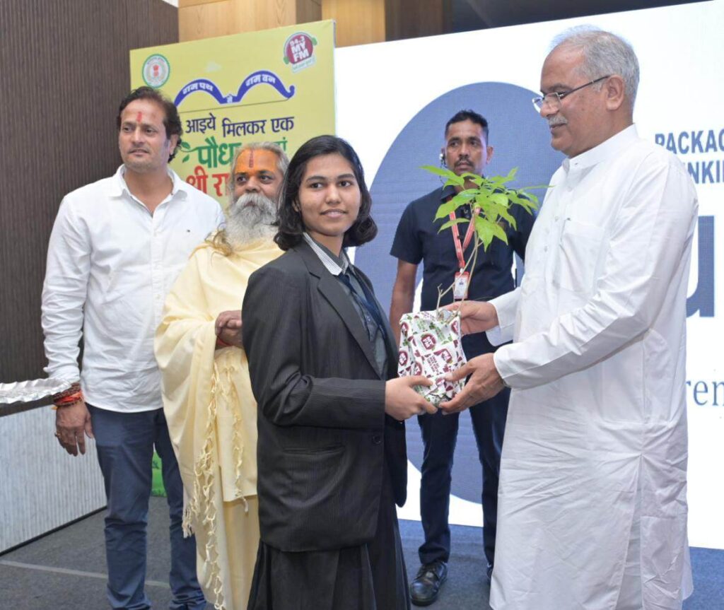 रायपुर, /मुख्यमंत्री श्री भूपेश बघेल मॉय एफ एम 94.3 के आईये मिलकर एक पौधा लगाएं श्रीराम के नाम कार्यक्रम में शामिल हुए। उन्होंने राम वनगमन पथ के प्रारंभिक नौ स्थलों के मिट्टी से लगाए गए पौधों को स्कूल के बच्चों को वितरित किया। इन पौधों को कौशल्या माता परिसर चंदखुरी में रोपण किया जाएगा।