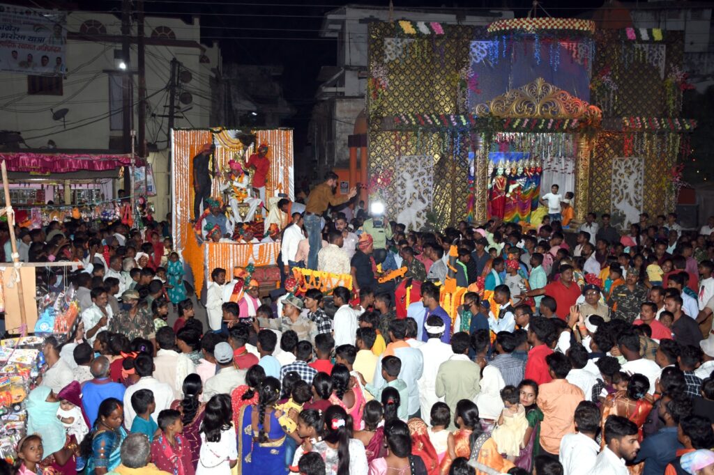 ब्यूरो रायपुर/कवर्धा:- सैकड़ो वर्षो से चले आ रहे सहसपुर लोहारा दशहरा का उत्सव इस बार भी अपनी परंपरा एवं अपने ऐतिहासिक रीति रिवाजो के साथ सैकड़ो गांवो के ग्रामीणों की उपस्थिति में हर्षॉल्लास के साथ मनाया गया 9 दिनों के विभिन्न धार्मिक अनुष्ठानों एवं रीति रिवाजो का पालन करते हुए राजा खड़गराज सिंह जब राजमाता एवं अपने कुल देवी देवताओं का आशीर्वाद प्राप्त करते हुए जब हजारों ग्रामीणों के साथ अपने महल से पूरी आन- बान और शान के साथ निकले तों लोगो में उनकी एक झलक देखने की जो ललक महिला-पुरुषो और बच्चो में दिखी उसे शब्दों में कहना आसान नहीं दो वाहनों में निकली उनकी यात्रा में एक सुसज्जित रथ नुमा वाहन में राजा खड़गराज सिंह अपने राजपुरोहित पंडित द्वारिका प्रसाद दुबे एवं दशहरा समिति के अध्यक्ष किसन सोनी के साथ सवार थे वही दूसरे वाहन में सहसपुर लोहारा रियासत के गांवो से पहुँचे वरिष्ठ एवं गणमान्य नागरिक थे वही डोले में राम जी देवी देवताओं के साथ सवार थे साथ में निशान और सहसपुर लोहारा राज का प्रतीक के साथ पारम्परिक वाद यंत्रो के साथ हजारों की संख्या में लोग नगर भ्रमण के लिए निकले जहाँ राजा खड़गराज सिंह ने लोगो का अभिवादन किया एवं नगर के देवी देवताओं से आशीर्वाद प्राप्त किया इस अवसर पर राजा की यात्रा राजमहल से होते हुए जमातपारा, चांदनी चौक, महावीर चौक महाराणा प्रताप चौक, राउतपारा होते हुए रावण भाठा पहुंची जहाँ 20 फिट ऊची रावण के पुतले को पूरी धार्मिक क्रिया करने के बाद रावण के पुतले का दहन किया गया जहाँ आतिशबाजी कर असत्य पर सत्य की जीत का जश्न मनाया गया इसके पश्चात राजा का काफिला वापस राजमहल मार्ग से राजमहल पहुंचा जिस प्रकार का उत्साह, जुनुन राजा से मिलने राजा को दशहरा पर्व की बधाई देने राजा को नारियल – पैसा और उपहार भेंट करने के लिए लोगो में दिखाई दी वो राजपरिवार के प्रति उनके ह्रदय से निकलने वाले सम्मान को दिखाता है चुनाव आचार सहिता की वजह से इस बार राज दरबार का आयोजन नहीं किया गया क्योंकि राजा खड़ग राज सिंह स्वयं कवर्धा विधानसभा क्षेत्र से आम आदमी पार्टी से चुनाव मैदान में है इस लिए उन्होंने आचार सहिता का पालन करते हुए दूर दूर से आये लोगो से महल के अंदर ही उनसे मुलाखात की और लोगो का भेंट और उनका अभिवादन स्वीकार करते हुए मिलने वालों को खुशहाली के प्रतीक के रूप में पान भेंट की और उनकी उन्नति अच्छे स्वास्थ्य की कामना की। इस प्रतिनिधि से चर्चा करते हुए राजा खड़ग राज सिंह ने कहा की दशहरा पर्व खुशहाली, सत्य प्रेम और भाईचारा सिखाती है यही अवसर होता है की सैकड़ो गांवो के हमारे परिवारिक लोगो से हमारी भेंट मुलाखात कर एक दूसरे का हाल चाल जानते है इस दिन पर हमारी यही कामना रहती है की किसानो की फसल अच