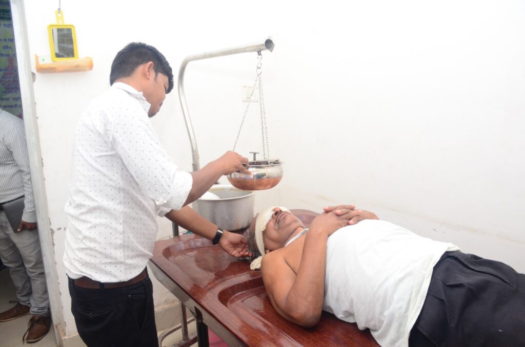 जिला आयुर्वेद अधिकारी डॉ. प्रदीप जैन ने बताया कि शिविर में आयुर्वेदिय पंचकर्म विधा अभ्यंग (मालिश), स्वेदन (मेडिकेटेड स्टीम), पत्रपिण्ड स्वेदन, षष्टीक शाली पिण्ड स्वेदन, कटि बस्ति, जानु बस्ति, पृष्ठ बस्ति, ग्रीवा बस्ति, मात्रा बस्ति, स्थानिक पीच, औषधीय लेप, पुल्टीश, शिरोधारा, शिरोपिच, शिरोबस्ति, नस्य, औषधीय धूमपान, कर्णपूरण रक्तमोक्षण अवालु, अग्निकर्म, मर्म चिकित्सा विधि से उपचार किया जा रहा है। शिविर में सभी प्रकार के वात रोग, घुटना दर्द, कमर दर्द, सर्वाईकल एवं लम्बर स्पोडिलाइटिस, एव्हीएन, फ्रोजेन सोल्डर्स, कलाई, व कोहनी का दर्द, टेनीस एल्बो, लकवा, साइटिका, हाथ पैरों में झुनझुनी एवं सुन्नपन, अनिद्रा, शिरःशूल (माइग्रेन) एवं न्यूरोमस्कुलर एवं मस्कुलोस्वलेटन इत्यादि रोगों का उपचार किया जाएगा।