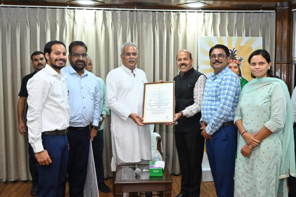 रायपुर, / मुख्यमंत्री श्री भूपेश बघेल ने इंदिरा गांधी कृषि विश्वविद्यालय को किसानों के लिए आर्टिफिशियल इंटेलिजेंस आधारित ‘क्रॉप डॉक्टर 2.0 एप विकसित करने के लिए राष्ट्रीय स्तर पर ‘राष्ट्रीय ई-गवर्नेंस पुरस्कार 2023’ ‘स्वर्ण’ से सम्मानित होने पर विश्वविद्यालय के कुलपति और विश्वविद्यालय की टीम को बधाई और शुभकामनाएं दी हैं। इस अवसर पर इंदिरा गांधी कृषि विश्वविद्यालय के कुलपति डॉ. गिरीश चंदेल और उनकी टीम के सदस्य उपस्थित थे।