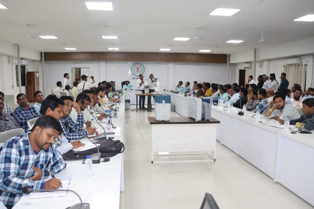 आंनद राठौर ब्यूरो सक्ति:-सक्ती 1 नवंबर 2023/ कलेक्टर एवं जिला निर्वाचन अधिकारी श्रीमती नूपुर राशि पन्ना के निर्देशन में विधानसभा निर्वाचन 2023 अंतर्गत कमीशनिंग कार्य के संबंध में आज कलेक्ट्रेट कार्यालय के सभाकक्ष में एकदिवसीय प्रशिक्षण का आयोजन किया गया। प्रशिक्षण का आयोजन तीनो विधानसभा क्षेत्रों के लिए सुबह 10 बजे से शुरुआत करते हुवे तीन पालियों में आयोजित किया गया। विधानसभा क्षेत्र क्रमाक 36 चंद्रपुर के लिए प्रशिक्षण सुबह 10 बजे से, विधानसभा क्षेत्र क्रमाक 37 जैजैपुर के लिए प्रशिक्षण दोपहर 01 बजे से और विधानसभा क्षेत्र क्रमाक 35 सक्ती के लिए प्रशिक्षण शाम 4 बजे से आयोजित की गई।