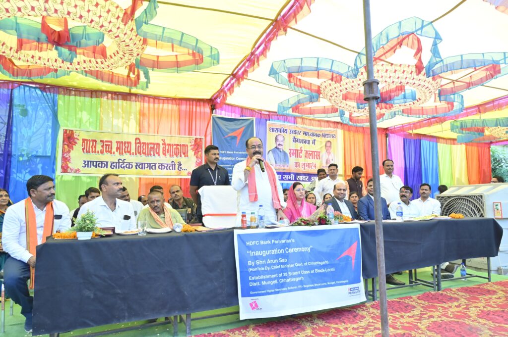 उप मुख्यमंत्री श्री साव ने बैगाकापा उच्चतर माध्यमिक विद्यालय में आयोजित कार्यक्रम को संबोधित करते हुए कहा कि बच्चों को अच्छी शिक्षा प्रदान करने के लिए स्कूलों में डिजिटल तकनीकों का उपयोग बढ़ाया जा रहा है। एचडीएफसी बैंक और एआरओ फाउंडेशन के सहयोग से स्मार्ट क्लास-रूम की यह पहल विद्यार्थियों के लिए काफी उपयोगी होगी। उन्होंने दोनों संस्थाओं को इसके लिए धन्यवाद दिया। लोरमी नगर पालिका के अध्यक्ष श्री सुजीत वर्मा, मुंगेली जिला पंचायत की सदस्य श्रीमती अनिता साहू और लोरमी जनपद पंचायत की अध्यक्ष श्रीमती वर्षा विक्रम सिंह ठाकुर सहित अनेक जनप्रतिनिधि एवं गणमान्य नागरिक कार्यक्रम में बड़ी संख्या में मौजूद थे।