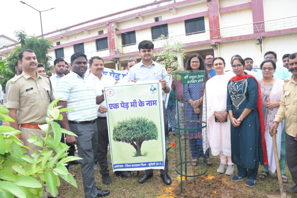 तिजराम साहू ब्यूरो मुंगेली // जिला कलेक्टोरेट परिसर में ‘‘एक पेड़ मां के नाम’’ के तहत पौधारोपण किया गया। कलेक्टर श्री राहुल देव, वरिष्ठ पुलिस अधीक्षक श्री गिरिजाशंकर जायसवाल एवं वनमंडलाधिकारी श्री संजय यादव सहित विभिन्न विभागों के अधिकारियों ने पौधारोपण कर पर्यावरण के संरक्षण एवं संवर्धन का संदेश दिया। कलेक्टर ने औषधीय पौधा नीम, एसएसपी, वनमंडलाधिकारी, अपर कलेक्टर श्रीमती निष्ठा पाण्डेय तिवारी और जिला पंचायत के मुख्य कार्यपालन अधिकारी श्री प्रभाकर पाण्डेय ने बादाम, अतिरिक्त पुलिस अधीक्षक श्री पंकज पटेल ने जामुन सहित अन्य अधिकारियों ने पीपल, आम तथा गुलमोहर का पौधा लगाकर जिलेवासियों को पर्यावरण संरक्षण के प्रति जागरूक किया।