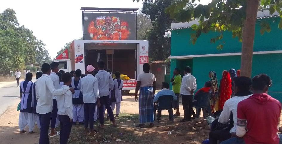 इस प्रचार रथ में एलईडी वाहन द्वारा विगत दिवस जिले के करतला के नोनबिर्रा,कोटमेर, बड़मार सहित अन्य गांवों में पहुँचकर लघु चलचित्रों के माध्यम से व्यापक प्रचार प्रसार किया गया। साथ ही अधिक से अधिक लोगों को सरकार की योजनाओं से जुड़ने एवं लाभ उठाने हेतु प्रेरित किया। एलईडी स्क्रीन के माध्यम से राज्य शासन की महत्वपूर्ण योजनाओं की जानकारी चलचित्रों के माध्यम से दिया जा रहा है। जिसमें किसानों से 21 क्विंटल प्रति एकड़ एवं 3100 रुपए प्रति क्विंटल की दर से धान खरीदी, 3716 करोड़ रुपये 13 लाख किसानों को मिला 2 वर्ष का बकाया धान का बोनस, तेंदूपत्ता संग्रहण में लगे श्रमिकों की पारिश्रमिक 4000 से बढ़ाकर 5500 रुपए, रामलला दर्शन योजना के तहत राज्य के तीर्थ यात्रियों को अयोध्या में रामलला के दर्शन जैसे अन्य योजनाओं की जानकारी शामिल है। प्रचार वाहन से अगले एक माह तक दूरस्थ ग्रामों में घूमकर लोगों को जागरूक करने का कार्य किया जाएगा।