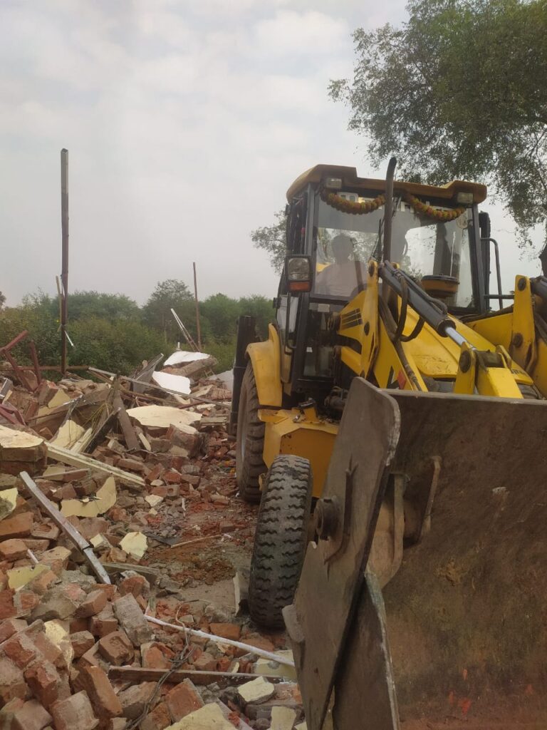 आशीष कश्यप बिलासपुर,/कुख्यात बदमाश रंजन गर्ग ने शहर से लगे मस्तूरी नेशनल हाइवे के पास एक एकड़ सरकारी बेशकीमती जमीन पर अवैध कब्जा कर फार्म हाउस बना लिया है, जिस पर शुक्रवार को प्रशासन बुलडोजर चलाकर ध्वस्त किया गया । रंजन गर्ग मर्डर भी कर चुका है। बता दें कि स्थानीय लोगों ने इस अवैध कब्जे की शिकायत की थी, जिसे कलेक्टर ने गंभीरता से लेते हुए राजस्व और पुलिस अफसरों को कार्रवाई करने के निर्देश दिए हैं। दरअसल, आदतन अपराधी रंजन गर्ग ने शहर से लगे मस्तूरी नेशनल हाईवे के ग्राम पंचायत ढेका पंचायत की अरपा नदी किनारे स्थित करीब एक एकड़ सरकारी जमीन पर अवैध कब्जा कर लिया है, जिसमें उसने फार्म हाउस बनाया है।