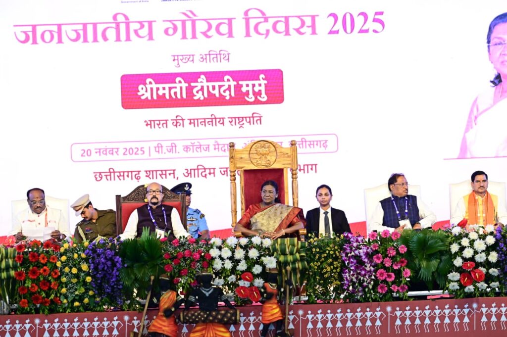 जनजातीय गौरव दिवस के भव्य समारोह में, छत्तीसगढ़ के आवासन एवं शहरी कार्य राज्य मंत्री श्री तोखन साहू ने महामहिम राष्ट्रपति श्रीमती द्रौपदी मुर्मु जी के स्वागत एवं समारोह में उनकी गरिमामय उपस्थिति पर अपनी श्रद्धा व्यक्त की। यह आयोजन राज्य की जनजातीय समाज के लिए एक गर्व का पल था, जिसे मंत्री साहू ने महत्वपूर्ण अवसर बताते हुए कहा कि इस तरह के कार्यक्रम जनजातीय पहचान और सांस्कृतिक विरासत को मजबूत करने में महत्वपूर्ण भूमिका निभाते हैं।