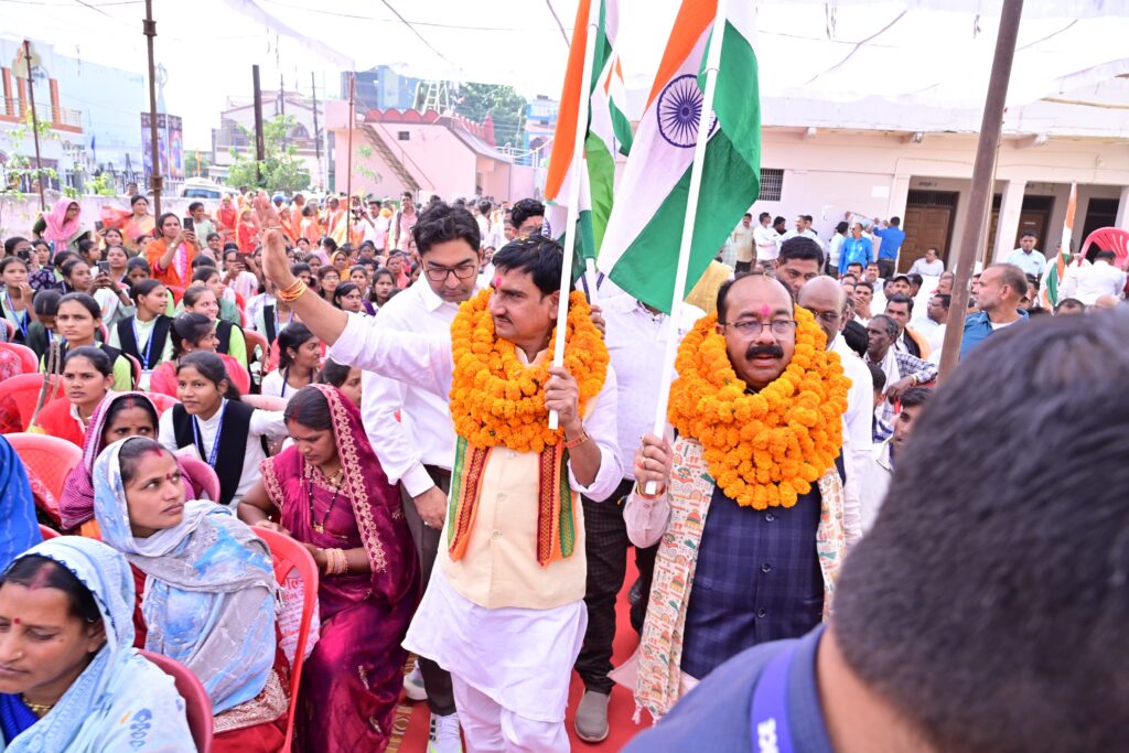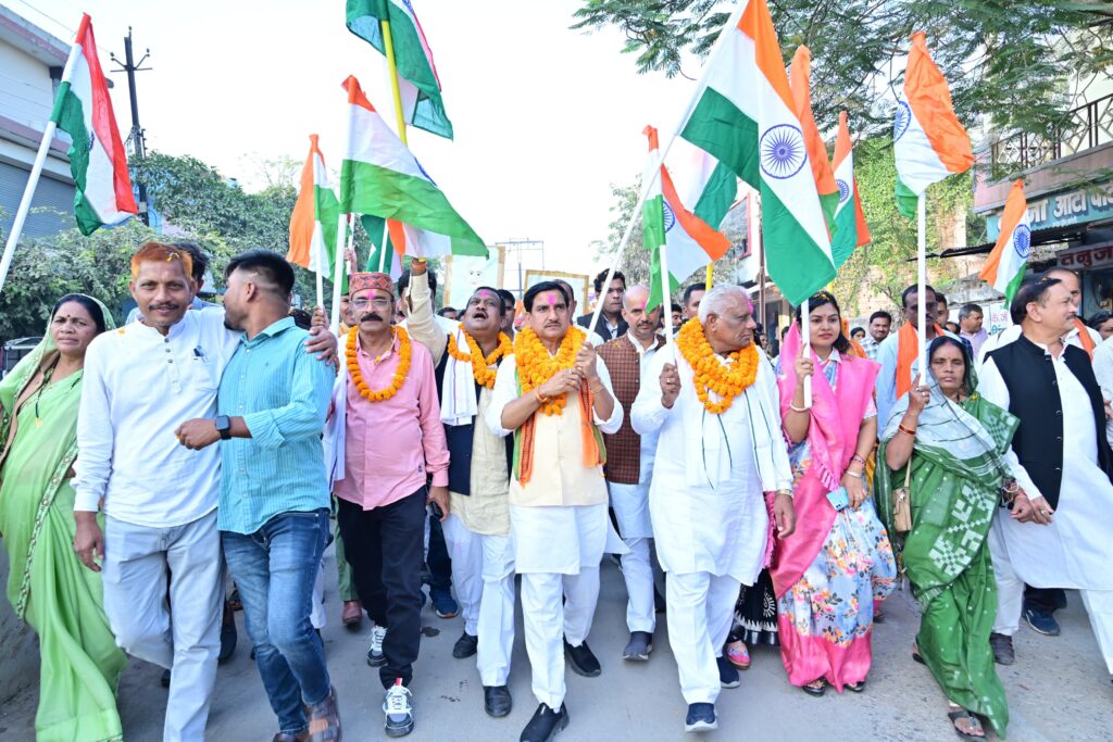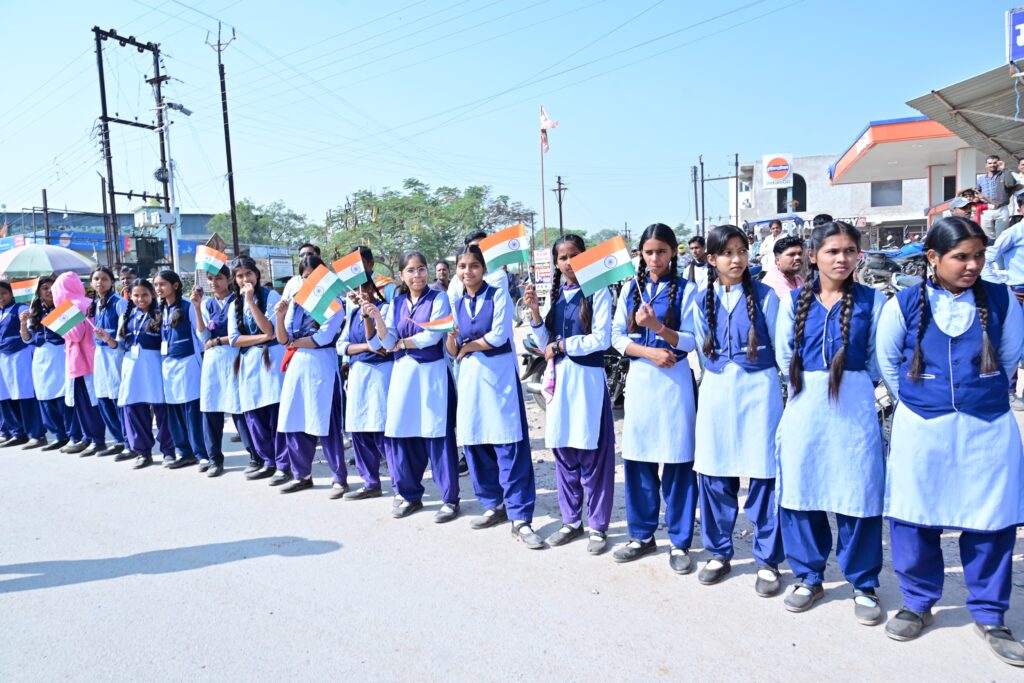 तिजराम साहू ब्यूरो मुंगेली// भारत के लौह पुरुष सरदार वल्लभभाई पटेल की 150वीं जयंती के अवसर पर लोरमी एवं मुंगेली में भव्य यूनिटी मार्च का आयोजन किया गया। इस अवसर पर केन्द्रीय राज्यमंत्री श्री तोखन साहू और उपमुख्यमंत्री श्री अरूण साव ने एकता रथ पर सवार होकर सरदार पटेल की प्रतिमा पर पुष्पांजलि अर्पित की और रथ यात्रा का शुभारंभ किया। लोरमी रेस्ट हाउस से प्रारंभ हुई यह भव्य यात्रा नगर के प्रमुख मार्गों से मनियारी नदी सेतु, फव्वारा चौक, मुंगेली चौक होते हुए राजपूत भवन में समाप्त हुई। यात्रा में एन.सी.सी. एवं एन.एस.एस. के छात्रों द्वारा एकता संदेश की तख्तियों को हाथ में लिए हुए वंदे मातरम और सरदार पटेल अमर रहे के जयकारों ने रैली में उत्साहपूर्ण माहौल बना दिया। 100 मीटर के एक तिरंगे के नीचे हजारों स्कूली एवं कॉलेज के बच्चों ने सरदार वल्लभभाई पटेल से प्रेरित एवं उनके आदर्शों का संदेश देते हुए आपसी एकता बनाए रखने के लिए प्रेरित किया। रैली मंे केन्द्रीय राज्यमंत्री श्री ने श्रमदान कर स्वच्छता का भी संदेश दिया। कार्यक्रम का समापन राजपूत भवन में किया गया, जहां वन्देमातरम गायन के साथ राष्ट्रीयता का संदेश दिया गया।