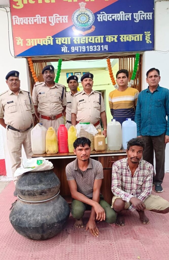 अवैध शराब पर कार्यवाही करते हुए 25 प्रकरणों में कुल 581 लीटर कच्ची महुआ शराब एवं देसी प्लेन मंदिरा शराब किया जप्त।