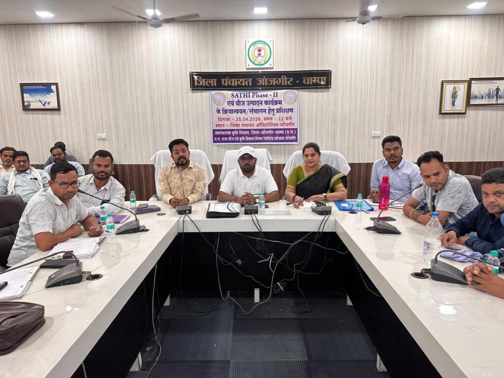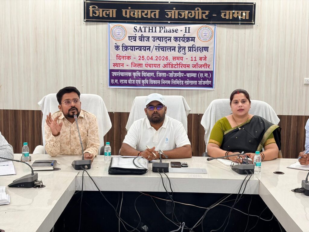 मनोज साहू ब्यूरो जांजगीर चांपा :-साथी पोर्टल फेस-२ के माध्यम से आगामी खरीफ 2026 में उच्च गुणवत्तायुक्त बीजों को समय पर सेवा सहकारी समितियों, कृषि विभाग के मैदानी अमलो, एफपीओ एव निजी बीज उत्पादक संस्थाओं के द्वारा किसानो के लिए भंडारण, विक्रय एव विक्रय किए जा रहे किसानों का संस्थावार कृषकवार विवरण साथी पोर्टल में इन्द्राज किए जाने हेतु आज दिनांक 25.04.2026 को जिला पंचायत सभागार जांजगीर में प्रशिक्षण कार्यक्रम आयोजित किया गया, प्रशिक्षण के दौरान प्रशिक्षक श्री सी पी मिश्रा (बीज प्रबंधक) द्वारा सभी समिति प्रबंधकों, बीज उत्पादक एफपीओ, निजी बीज उत्पादक संस्था प्रबंधकों एव वरिष्ठ कृषि विकास अधिकारियों को पोर्टल के संबंध में बारीकी से जानकारी दी गई, उन्हें ऑनबोर्ड कराया गया एव उनकी समस्याओं का निराकरण किया गया।