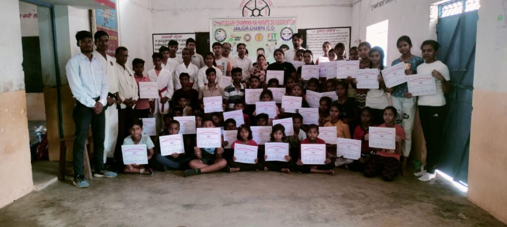 मनोज साहू ब्यूरो जांजगीर चांपा ,,सात दिवसीय शिविर का हुआ समापन छत्तीसगढ़ धमिका काई कराटे डु असोशिएशन जांजगीर चाम्पा के तत्वाधान में आत्मरक्षा के उद्देश्य से सात दिवसीय शिविर का आयोजन सरस्वती शिशु मंदिर तिलई के प्रांगण में किया गया यह शिविर धम्मिका काई कराते डु असोसिएशन आफ छत्तीसगढ़ के स्टेट हेड ऑफ इंचार्ज कराते संघ खेत्रो महानंद जी के दिशा निर्देश मे जांजगीर चम्पा कराते संघ महा सचिव विशाल पाटले जी के नेतृत्व मे