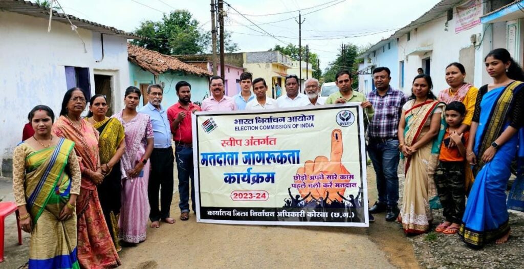 कोरबा – कलेक्टर एवं जिला निर्वाचन अधिकारी श्री संजीव कुमार झा एवं स्वीप के नोडल अधिकारी के मार्गदर्शन में आज बालको नगर के भदरापारा बस्ती में सहायक स्वीप नोडल अधिकारी श्री अनिल रात्रे ने अपने टीम के साथ घर-घर जाकर मतदाताओं को जागरूक किया गया। जिसमें बालको प्लांट में कार्यरत मजदूर, ठेका श्रमिक, कर्मचारी , अधिकारी व गृहणी महिलाओं को स्वीप कार्यक्रम के तहत सभी को मतदान अवश्य करने प्रेरित किया गया। कार्यक्रम में युवा वर्ग ने बढ़चढ़ कर हिस्सा लिया। साथ मे संकल्प लिया कि हम मतदान जरूर करेंगे। उन्होंने उपस्थित सभी नागरिकों के साथ” छोड़ो अपने सारे काम सबसे पहले करे मतदान” का नारा भी जोर शोर के साथ लगाए।