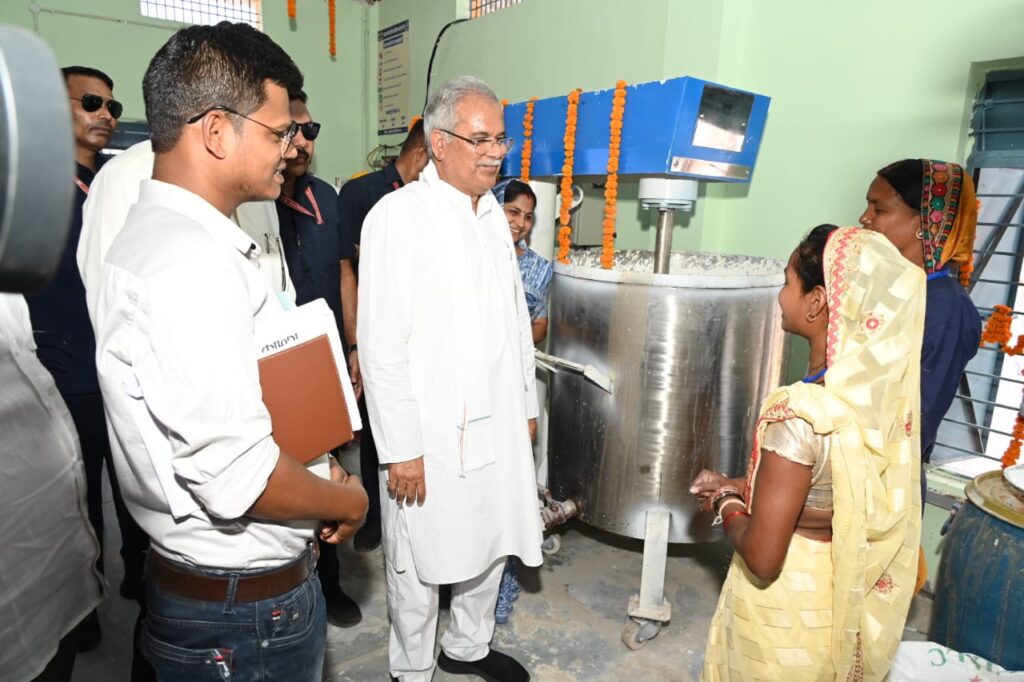 मुंगेली, मुख्यमंत्री श्री भूपेश बघेल ने आज लोरमी विधानसभा में भेंट-मुलाकात कार्यक्रम के दौरान चंदली में रीपा भी देखा तथा यहां हो रही गतिविधियों का निरीक्षण किया। उन्होंने महिला समूह के सदस्यों से चर्चा भी की। मुख्यमंत्री को जय बुढ़ा देव स्व-सहायता समूह की सदस्य सुनीता धु्रव ने बताया कि पिछले 2 माह ही हुए गोबर से प्राकृतिक पेंट का निर्माण करते। 860 लीटर गोबर पेंट बेच चुके हैं, इससे 62 हजार रुपए की आमदनी हो चुकी है।