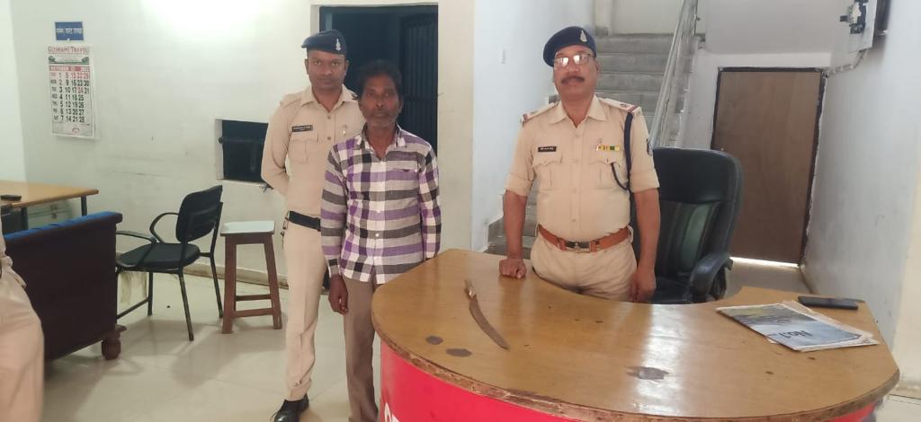 आशीष कश्यप बिलासपुर:-श्रीमान् पुलिस अधीक्षक महोदय श्री संतोष कुमार सिंह (भापुसे) द्वारा जिले में अवैध हथियार रखकर अपराध करने की नीयत से घूमने वालो पर अंकुश लगाने हेतु धरपकड़ कर कार्यवाही करने निर्देश प्राप्त हुए, जिसके परिपालन में तोरवा पुलिस द्वारा थाना क्षेत्र में लगातार पेट्रोलिंग कर निगाह रखी जा रही थी कि टाउन भ्रमण दौरान सूचना मिली कि एक व्यक्ति हेमू अटल आवास तोरवा मे छुरा चाकू रखकर अपराध करने की नीयत से घूम रहा है। उक्त सूचना से श्रीमान् अतिरिक्त पुलिस अधीक्षक महोदय शहर बिलासपुर श्री राजेन्द्र जायसवाल एवं सी. एस. पी. ( कोतवाली ) श्रीमति पूजा कुमार(भापुसे) को अवगत कराया जाकर उनके मार्ग दर्शन एवं दिशा निर्देशन में सूचना स्थल पहुंचकर आरोपी अशोक सूर्यवंशी पिता खमहान सूर्यवंशी उम्र 54 साल निवासी वेद पर सदा थाना मस्तूरी जिला बिलासपुर वर्तमान पता हेमू नगर तोरवा थाना तोरवा बिलासपुर को घेराबंदी कर पकड़ा गया, जिसके कब्जे से 01 नग चाकू जप्त किया गया है। आरोपी के विरूद्ध आर्म्स एक्ट के प्रावधानों के तहत् कार्यवाही की गई है।