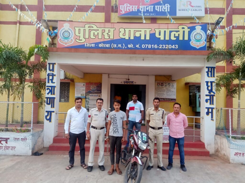 कोरबा – पुलिस अधीक्षक महोदय श्री यू उदय किरण के दिशानिर्देश में , अतिरिक्त पुलिस अधीक्षक महोदय श्री अभिषेक वर्मा एवं अनुविभागीय अधिकारी (पुलिस) कटघोरा श्री ईश्वर त्रिवेदी के मार्ग़दर्शन पर थाना प्रभारी पाली श्री राजीव श्रीवास्तव के नेतृत्व में बेहतर पुलिसिंग प्रभावशील बनाने के लिए एवम् अपराध पर अकुंश लगाने अपराधिक गतिविधियों पर रोकथाम हेतु कार्यवाही की जा रही है जो दिनांक 15.04.2023 को मुखबिर की सूचना पर ग्राम रंगोले निवासी रवि किशन चौहान अपनी घर के बाड़ी में एक सोल्ड मोटरसायकल को छुपा कर रखा है, बेचने के फिराक में लोगों को संपर्क कर रहा है कि घटना स्थल पर जाकर तस्दीकी कार्यवाही पर्यान्त रवि किशन को पूछताछ करने पर आरोपी के कब्जे से एक सोल्ड होण्डा सीबी साईन महरून कलर इंजन नंबर JC65E-D446095 चेचिस नंबर का ME5JC651AG7296016 कीमती लगभग 40000 /- रूपये को गवाहों के समक्ष जप्त कर कब्जा पुलिस लिया गया। अपराध सदर का घटित करना पाये जाने पर धारा 41 (1-4) / 379 भादवि0 के तहत थाना में मामला पंजीबद्ध कर आरोपी का न्यायिक रिमांड तैयार कर माननीय न्यायालय जेएमएफसी पाली में पेश करने पर न्यायिक रिमांड पर जेल भेजा गया है।