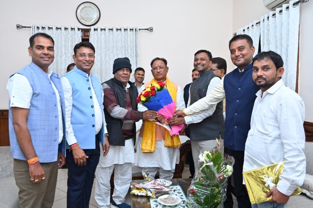 मुंगेली / मुख्यमंत्री विष्णुदेव साय से उनके निवास कार्यालय पहुना में मुंगेली विधायक पुन्नूलाल मोहले जी के प्रतिनिधित्व में स्टार्स आफ टुमारो वेलफेयर सोसायटी मुंगेली के प्रतिनिधि मंडल ने सौजन्य मुलाकात कर आमंत्रण पत्र निवेदित करते हुवे मुख्यमंत्री जी को मेले में सम्मिलित होने का न्योता दिया। जिस पर उन्होंने मेले में शामिल होने का आश्वासन प्रदान किया साथ ही मुंगेली के त्यौहार के नाम से प्रसिद्ध बहुप्रतीक्षित मुंगेली व्यापार मेला के 8 वे वर्ष के ब्राउसर का विमोचन किया। इस अवसर पर स्टार्स ऑफ टुमॉरो के संयोजक रामपाल सिंह, सह संयोजक रामशरण यादव, अध्यक्ष महावीर सिंह, सचिव विनोद यादव, कोषाध्यक्ष धनराज परिहार उपस्थित रहे। मुख्यमंत्री विष्णुदेव साय ने व्यापार मेले में आमंत्रण के लिए प्रतिनिधिमंडल को धन्यवाद देते हुवे व्यापार मेले के सफल आयोजन के लिए बधाई एवं शुभकामनाएं दी। मुख्यमंत्री ने स्टार्स ऑफ टुमॉरो द्वारा पर्यावरण संरक्षण के क्षेत्र में किये जा रहे प्रयासों की