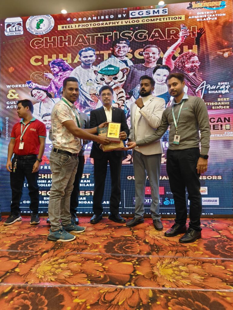 कोमल देवांगन मुंगेलिहा // छत्तीसगढ़ सोशल मीडिया सोसायटी, छत्तीसगढ़ बिगेस्ट इनफ्लुएंसर्स मीटअप दो दिवसीय 20 एवं 21 दिसम्बर को बिलासपुर शहर के हॉटल सिल्वर ओक में सोशल मीडिया के विभिन्न प्लेटफार्म यूट्यूबरो, रील्स, फोटोग्राफी, ब्लॉगर, फोटोग्राफी सहित अन्य सोशल मीडिया के लोगों का मीटअप किया गया। मीटअप कंपटीशन में सिल्वर ओक, कैनन, हल्दीराम, क्रोमा, सत्या फिल्म स्टूडियो, कौशल शुभम और छत्तीसगढ़ ग्रैंड इंफ्लुएंसर्स मीप, रविराज इवेंट्स द्वारा आयोजित किया गया। जिसमें छत्तीसगढ़ से अलग-अलग जिले से आए हुए यूट्यूबरो, इंस्टाग्राम, रिल्स सहित अन्य सोशल मीडिया के लोग कार्यक्रम में शामिल हुए। इस दौरान विभिन्न सोशल मीडिया यूट्यूबर, रील्स, फोटोग्राफी, ब्लॉग और फोटोग्राफी में उत्कृष्ट कार्य करने वाले लोगों को शील्ड, प्रशस्ति पत्र सहित अन्य साम्रगी क्रोमा इन स्टोर ऑनलाइन मोबाइल द्वारा भेंट कर सभी लोगों को सम्मानित किया गया।