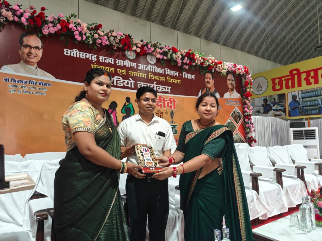 रायपुर-छत्तीसगढ़ राज्य ग्रामीण आजीविका मिशन बिहान अंतर्गत आज दिनांक 31 अगस्त 2025 को CMTC सेरीखेड़ी रायपुर में “दीदी के गोठ” रेडियो प्रसारण कार्यक्रम का सफलतापूर्वक आयोजन किया गया। कार्यक्रम में महिला स्वसहायता समूहों की बड़ी संख्या में सहभागिता रही।