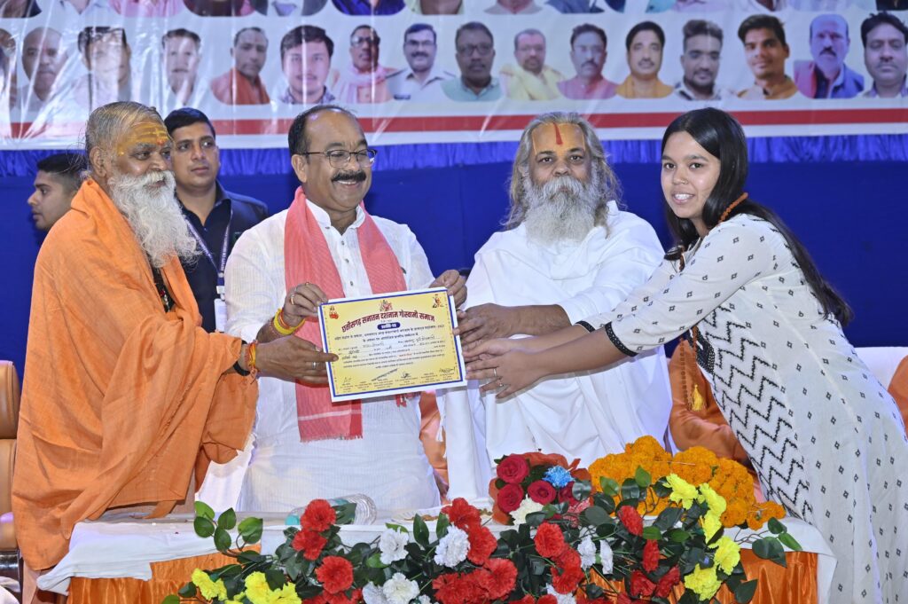 उप मुख्यमंत्री श्री साव ने कहा कि, आज सामाजिक और सांस्कृतिक मूल्य कमजोर पड़ रहे हैं, हमें शंकराचार्य जी के संदेश को और अधिक प्रभावी ढंग से जन-जन तक पहुंचाना होगा। हमारी युवा पीढ़ी को सनातन धर्म के महत्व से अवगत कराना होगा। उन्होंने कहा कि, हम सब मिलकर यह संकल्प लें कि हम जगद्गुरु शंकराचार्य जी के आदर्शों को अपने जीवन में उतारेंगे और छत्तीसगढ़ में सनातन को और अधिक सशक्त बनाएंगे। समारोह में उप मुख्यमंत्री श्री साव ने समाज के प्रतिभावान छात्र-छात्राओं एवं विशेष उपलब्धि हासिल करने वाले समाज के गौरव को सम्मानित किया। साथ ही रायपुर में समाजिक भवन के निर्माण के लिए 25 लाख रुपए की घोषणा की।
