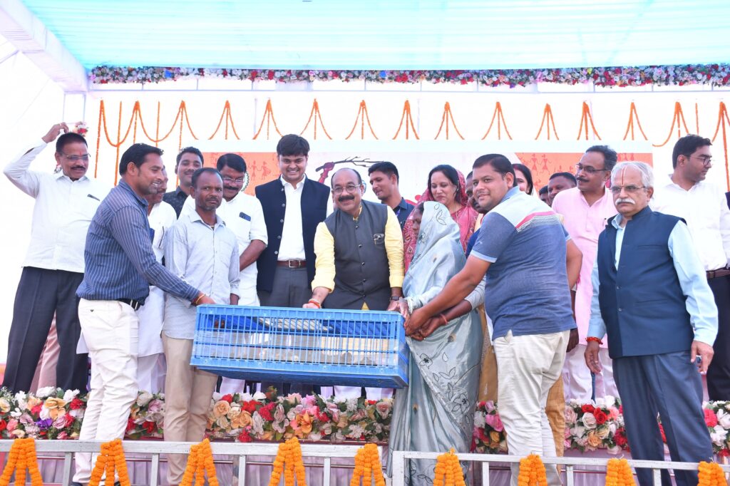 खोले जा रहे हैं। हमारी सरकार आदिवासी समाज की बेहतरी के लिए लगातार योजना बनाकर कार्य कर रही है। आदिवासी समाज के भाई-बहनों की तरक्की और वनांचल के विकास के लिए हमारी सरकार समर्पित है और पूरी तत्परता से कार्य कर रही है। आज आदिवासी समाज की बेटी राष्ट्रपति के रूप में देश के सर्वाेच्च संवैधानिक पद पर बैठी है। यह सौभाग्य की बात है कि आज छत्तीसगढ़ में आदिवासी समाज का बेटा मुख्यमंत्री के रूप में कार्य कर रहे हैं। हमने बनाया है हम ही संवारेंगे के मूल मंत्र के साथ आज छत्तीसगढ़ का सर्वांगीण विकास हो रहा है।