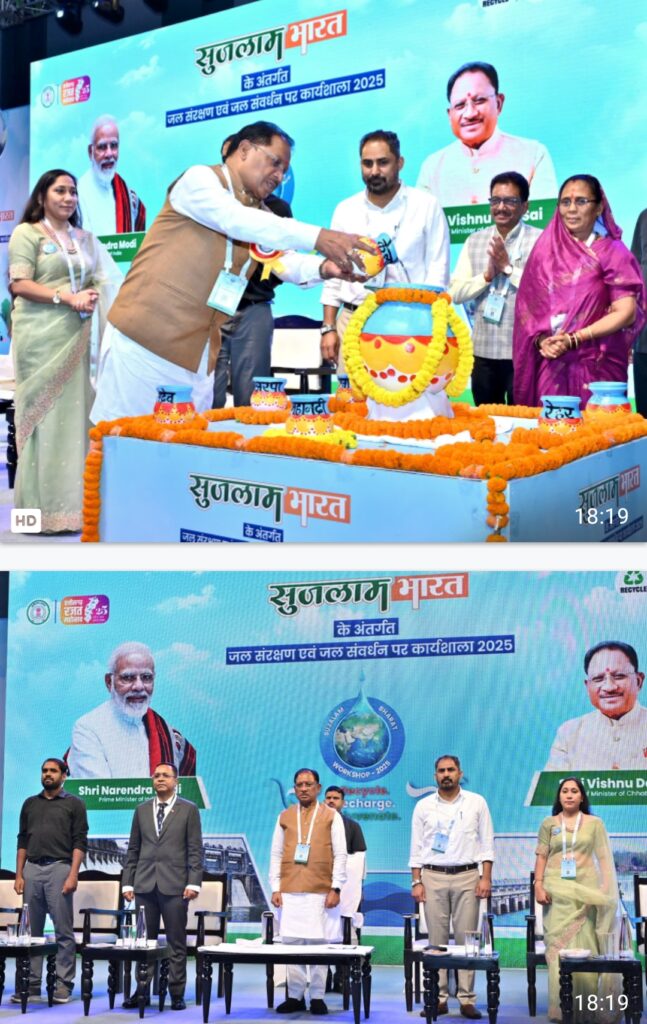 मुख्यमंत्री श्री विष्णु देव साय ने ‘सुजलाम भारत’ के अंतर्गत राजधानी रायपुर स्थित ओमाया गार्डन में जल संरक्षण एवं जल संवर्धन विषय पर आयोजित कार्यशाला को संबोधित करते हुए यह बात कही। इस अवसर पर उन्होंने जल कलश पर जल अर्पित कर जल संचयन का संदेश दिया।