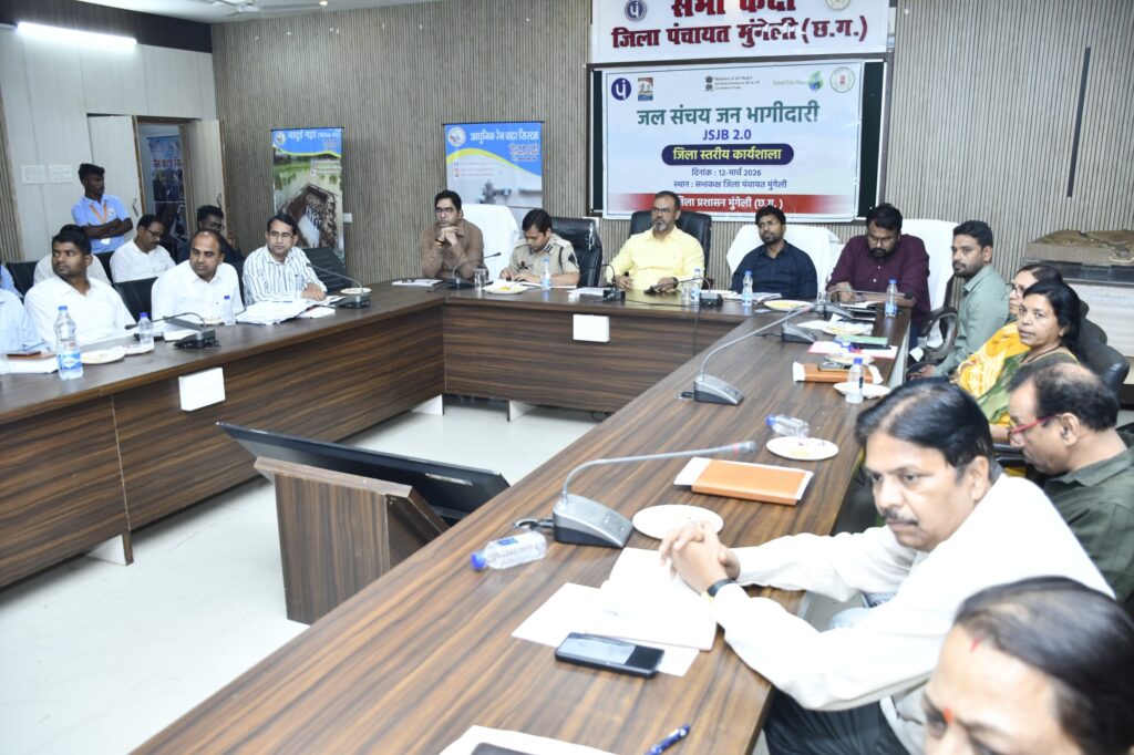 मुंगेली// जिला पंचायत के सभाकक्ष में जल संचय जन भागीदारी 2.0 पर जिला स्तरीय कार्यशाला का आयोजन किया गया। कार्यशाला में कलेक्टर श्री कुन्दन कुमार ने जिले में जल संरक्षण, भू-जल प्रबंधन पर आगामी कार्ययोजना के संबंध में आवश्यक दिशा-निर्देश दिए। बैठक में जिले की भौगोलिक स्थिति, उपलब्ध जल संसाधनों तथा वर्तमान जल प्रबंधन व्यवस्था पर प्रकाश डाला गया। इसके पश्चात जल बजट एवं जल दोहन की स्थिति की समीक्षा की गई और जल संसाधनों के संतुलित उपयोग पर जोर दिया गया। साथ ही भू-जल स्तर के प्रभाव और मूल्यांकन पर भी चर्चा हुई। कलेक्टर ने कहा कि जल संरक्षण और भू-जल प्रबंधन के लिए सभी विभागों को समन्वय के साथ कार्य करना होगा।