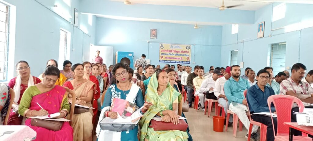 जिला के समावेशी शिक्षा प्रभारी अशोक कश्यप द्वारा दिव्यांग बच्चों के लिए स्वरचित अपनी कविता का पाठ पठन कर शिक्षकों को प्रेरित किया गया दिव्यांग बच्चों को समान अवसर उपलब्ध कराना एवं शासन की योजनाओं का लाभ देने हेतु निर्देशित किया गया उपरोक्त वातावरण निर्माण प्रशिक्षण कार्यक्रम 130 शिक्षक एवं व्याख्याता को लक्षित कर प्रशिक्षण दिया गया उपरोक्त प्रशिक्षण मास्टर ट्रेनर के द्वारा प्रोजेक्टर के माध्यम से प्रशिक्षार्थियों को समावेशी शिक्षा उद्देश्य समावेशी शिक्षा की विभिन्न गतिविधियां शाला में बाधा रहित वातावरण तैयार करना नई शिक्षा नीति नि:शक्तजन अधिकार अधिनियम दिव्यांग -जनों के जीवन को बेहतर बनाने की कवायत 21 प्रकार की दिव्यंगता की पहचान करना दिव्यांग बच्चों के लिए समग्र शिक्षा एवं समाज कल्याण विभाग जिला पुनर्वास केंद्र द्वारा एस्कॉर्ट एलाउंस ट्रांसपोर्ट एलाउंस बालिका शिष्यावृत्ति गृह आधारित शिक्षा आकलन शिविर – सर्जरी ऑपरेशन – छात्रवृत्ति खेलकूद दिव्यांगता दिवस आंकलन शिविर डाइस डाटा प्रशस्त एप्प का संचालन आईसीटी उपकरणों एवं ऑनलाईन लाइब्रेरी दिव्यांगता का कारण एवं समाधान दिव्यांगजनों के स्वास्थ्य लाभ हेतु व्यायाम विद्यालय में सकारात्मक वातावरण तैयार करने एवं शासन की योजनाओं से लाभान्वित करने हेतु उन्मुखीकरण दिव्यांग बच्चों के सहयोग से उपलब्धि का मूल्यांकन कक्षा प्रबंधन सहपाठी समूह का निर्माण संबंधी प्रशिक्षण प्रदान किया गया की जानकारी विस्तृतपूर्वक दिया गया। गैप आइडेंटिफिकेशन का आउट ऑफ स्कूल प्रशिक्षण में 80 शिक्षा एवं 20 पालक अभिभावकगण की उपस्थिति सुनिश्चित की गई इस प्रशिक्षण में शाला से बाहर विशेष आवश्यकता वाले बच्चों का चिन्हांकन कर शिक्षा के मुख्य धारा से जोड़ने हेतु जन जागरुकता कार्यक्रम समावेशी शिक्षा अंतर्गत पालकों अभिभावकों समुदाय तथा शिक्षा को कैसे उन्मुखीकृत किया जाए समावेशी शिक्षा उद्देश्य समावेशी शिक्षा के विभिन्न गतिविधियां शाला में बाधा रहित वातावरण तैयार करना नई शिक्षा नीति निशक्तजन अधिकार अधिनियम दिव्यांगजनों के जीवन को बेहतर बनाने की कवायत 21 प्रकार की दिव्यांगता की पहचान करना दिव्यांग बच्चों को शाला में बनाए रखने हेतु उन्हें शासन की योजनाओं का लाभ दिलाना आवश्यकता अनुरूप उपकरण सहायक सामग्री उपलब्ध कराना शिक्षा से संबंधित आने वाली समस्याओं का समाधान कर उनको शिक्षा की मुख्य धारा से जोड़ना प्रशिक्षण में सभी शिक्षकों व्याख्याता पालकों एवं अभिभावकों हेतु चाय नाश्ता एवं भोजन की व्यवस्था बीआरसी भवन मुंगेली में की गई प्रशिक्षण के समापन अवसर पर विकासखंड शिक्षा अधिकारी डाँ प्रतिभा मंडलोई ने सभी प्रतिभागियों को शाला क