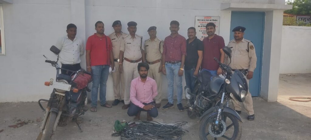 जप्ती:- केबल वॉयर, कटर मशीन, चोरी मे इस्तेमाल किये औजार, सीसीटीव्ही का एनव्हीआर एवं