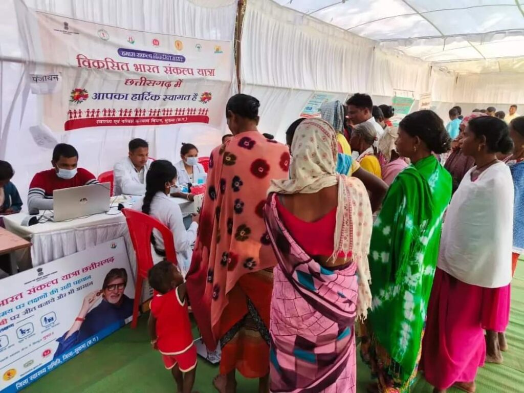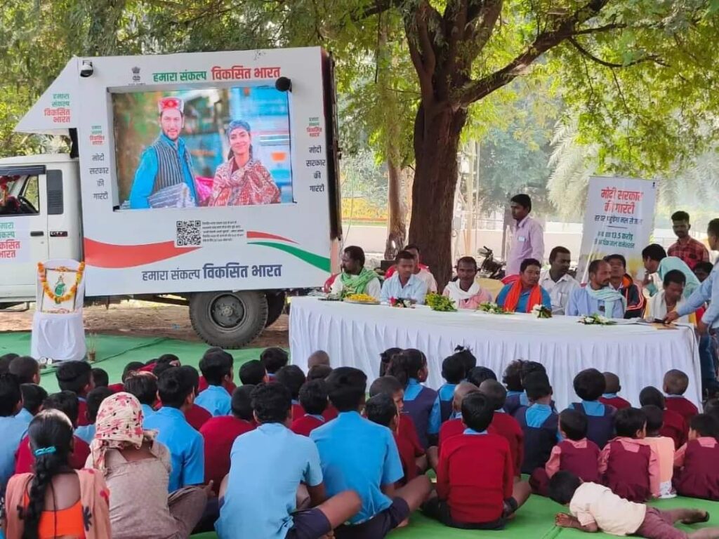 सुकमा:-सरकार की जन कल्याणकारी योजनाओं को जन-जन तक पहुँचाने एवं इनसे लाभ लेने वाले हितग्राहियों से संवाद करने के उद्देश्य से शुरू की गई ’विकसित भारत संकल्प यात्रा’ का सफर सुकमा जिले में निरंतर जारी है। आज जिले के सुकमा विकासखण्ड के ग्राम कोयाबेकुर और फुलबगड़ी तथा छिंदगढ़ विकासखण्ड के ग्राम पेदारास और तंगारास और कोंटा विकासखण्ड के गगनपल्ली और मारईगुड़ा में कार्यक्रम का आयोजन किया गया। इस दौरान ’विकसित भारत संकल्प यात्रा’ प्रचार रथ के ग्राम में आगमन होने पर महिलाओं तथा ग्रामीणों द्वारा पूजा-अर्चना कर स्वागत किया गया। कार्यक्रम स्थलों में विभिन्न विभागों द्वारा आम जनता को शासन की जनकल्याणकारी योजनाओं की जानकारी प्रदान करने स्टॉल भी लगाया गया था।