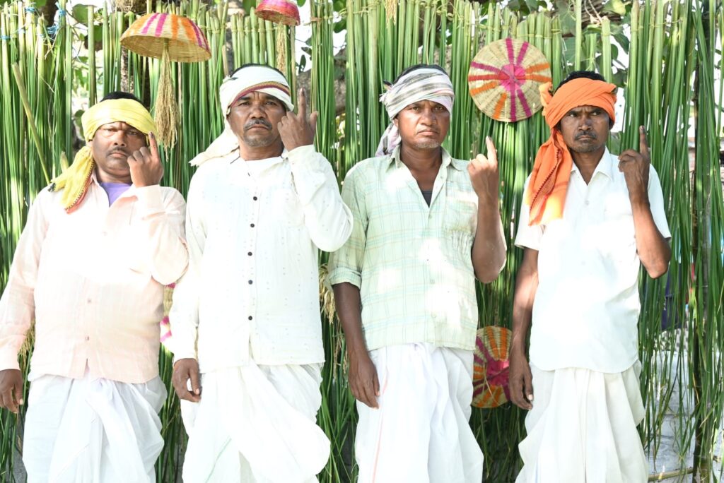 आशीष कश्यप बिलासपुर:-बिलासपुर/ विशेष पिछड़ी बैगा जनजाति के लोगों ने लोकतंत्र के सबसे बड़े पर्व में मतदान कर अपनी भागीदारी निभाई है। लोकतंत्र में जनता ही सर्वोपरि है। लोकतंत्र की मजबूती के लिए सभी को मतदान करना अनिवार्य है । जिले के कोटा ब्लॉक में 32 गांवों में लगभग 5 हजार विशेष पिछड़ी जनजाति बैगा आदिवासी निवास करते हैं। इस महापर्व में उन्होंने भी आज भागीदारी निभाई है। सामान्यतः वे खेत और जंगलों में जाकर अपनी आजीविका चलाते है। लेकिन इस बार वे बढ़-चढ़कर मतदान की प्रक्रिया में शामिल हो रहे हैं। उन्होंने न केवल मतदान किया बल्कि खुशी-खुशी सेल्फी भी ली है। आज जिले के ग्राम करका, कुरदर, डिंडोल आदि गांवों के विशेष पिछड़ी जनजाति बैगा आदिवासी मतदान कर अपने जागरूकता का परिचय भी दे रहे हैं। सारे काम छोड़कर गांव डिडोल के श्री शिव सिंह, श्री कार्तिक राम, श्री सियाराम, श्रीमती बुधवरिया, श्रीमती पार्वती बाई ने मतदान करते हुए विकास का रास्ता चुना है।