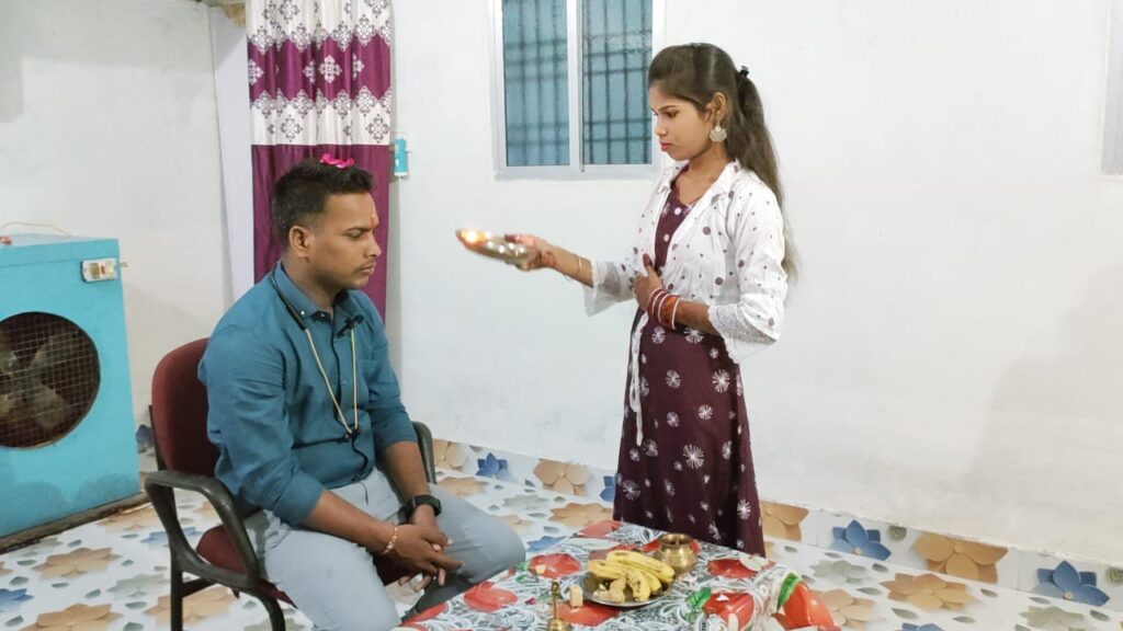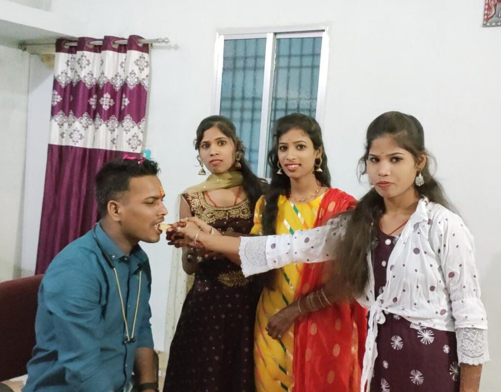 रात्रि 9 बजे के पश्चात शुभ मुहूर्त में बहनों ने विधिवत रूप से भाइयों का तिलक वंदन करते हुए उनका मुंह मीठा कर कलाइयों पर बांधी राखी