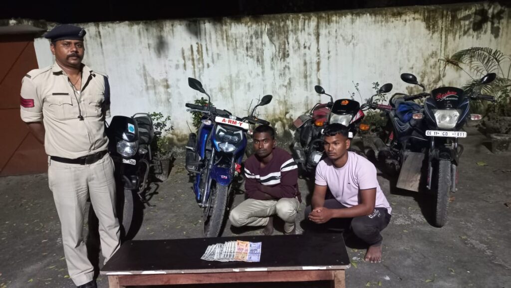 मनोज साहू ब्यूरो जांजगीर चांपा:- मामले का संक्षिप्त विवरण इस प्रकार है कि *थाना शिवरीनारायण क्षेत्र के ग्राम पचरी में जुआ खेलने की सूचना पर साइबर सेल एवं थाना शिवरीनारायण स्टाफ के द्वारा रेड कार्यवाही* किया गया कुछ लोग पुलिस को देखकर भाग गए मौके पर *आरोपी करण कुमार आदिले, कमल कुमार दिवाकर दोनों निवासी पचरी थाना शिवरीनारायण मिला जिसके कब्जे से ₹7,000/ एवं 52 पत्ती ताश तथा घटना स्थल से 04 मोटर साइकिल को बरामद* किया जाकर आरोपियों के विरूद्ध अपराध क्रमांक 481/23 धारा जुआ एक्ट के तहत कार्रवाई की गई है।