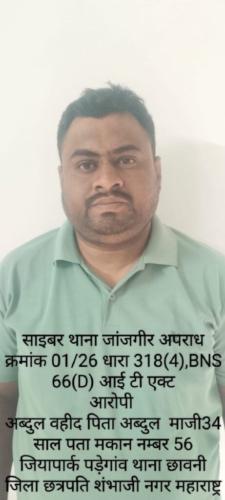 2. अब्दुल वाहिद (34 वर्ष), निवासी औरंगाबाद—को गिरफ्तार कर न्यायिक अभिरक्षा में भेज दिया है। मामले में एक अन्य आरोपी की तलाश जारी है और पुलिस आगे की जांच कर रही है।