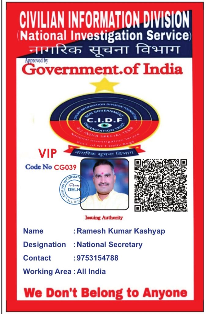 डॉ रमेश कश्यप को दी गई बहुत बड़ी जिम्मेदारी नागरिक सूचना विभाग में राष्ट्रीय सचिव बनाये गये