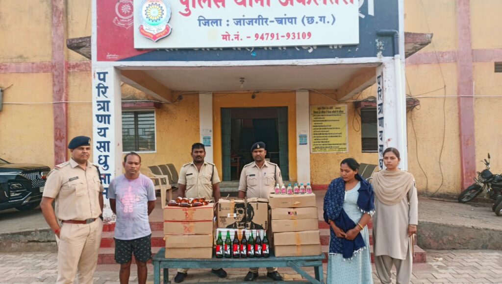 मनोज साहू ब्यूरो जांजगीर चांपा:-दिनांक 14.04.2024 को थाना अकलतरा पुलिस को सूचना मिला कि वार्ड क्रं 13 अकलतरा के टेकू बंजारे एंव उसकी पत्नि अल्का बंजारे द्वारा भारी मात्रा मे अवैध रूप से देशी एंव विदेशी शराब रखकर बिक्री करते है की सूचना पर रेड कार्यवाही किया गया आरोपी टेकू बंजारे के घर के पास जाकर घेराबंदी किया जो आरोपी द्वारा पुलिस को आते देख अपने घर के दरवाजा को बंद कर दिया था बडी मशक्त से थाना स्टाफ के द्वारा आरोपी के घर के छत से घर अंदर प्रवेश कर रेड किये तो घर मे लगे टाईल्स मे जमीन मे गड्ढा खोदकर रखे कार्टून मे गोवा स्पेशल व्हस्की 192 पाव ,बियर 21 बोतल एंव देशी प्लेन शराब 240 पाव एंव बिक्री रकम 2000 जुमला कीमती 53,180/₹ को *आरोपी* टेकू बंजारे उम्र 45 वर्ष एंव अल्का बंजारे उम्र 36 वर्ष साकिनान वार्ड क्रं 13 अकलतरा थाना अकलतरा जिला जांजगीर चांपा के कब्जे से बरामद किया जाकर आरोपियों के विरुद्ध थाना अकलतरा में धारा 34(2) आब. एक्ट का कार्यवाही की जाकर विधिवत गिरफ्तार कर दिनांक 14.04.24 को न्यायिक रिमांड पर भेजा गया।