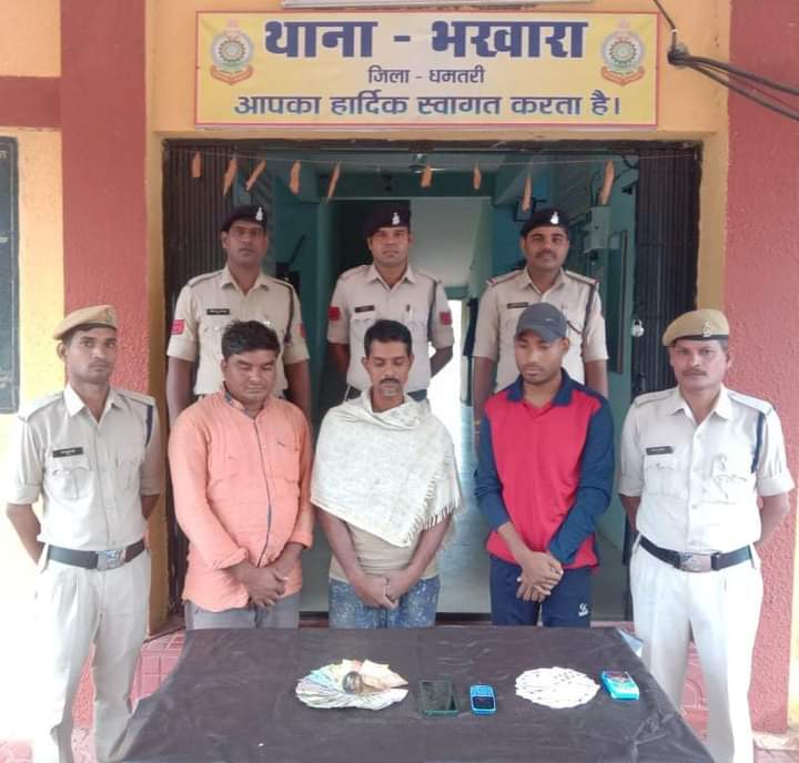 *थाना भखारा के ग्राम कुर्रा के सांस्कृतिक भवन के सामने खेल रहे तीन आरोपियों को किया गया सायबर पुलिस टीम द्वारा गिरफ्तार*