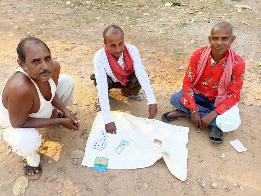 *ग्राम कोसा तिलोकवा पारा मे आरोपी* रामशंकर साहू निवासी कोसा ओम प्रकाश साहू निवासी कोसा वीरेंद्र साहू निवासी कोसा लच्छी राम पटेल निवासी कोसा *ग्राम जेवरा मे आरोपी* शत्रुघ्न जायसवाल निवासी जेवरा, राजकुमार यादव निवासी जेवरा, संतोष यादव निवासी जेवरा को तास पत्ती से काट पत्ती नामक जुआ खेलते पाया गया जिसके कब्जे *जुमला कुल नगदी 4170/ रूपये एवं तीन गड्डी ताश, तीन बोरी फट्टी जप्त किया* जाकर थाना मुलमुला में आरोपियों के विरूद्ध तीन प्रकरण अलग – अलग अपराध क्रमांक 304/23, 305/23 एवम 306/23 धारा 3 (2) छ.ग. जुआ (प्रतिषेध) अधिनियम छ.ग. 2022 के तहत अपराध पंजीबद्ध किया जाकर *आरोपियों के विरूद्ध जुआ अधिनियम के तहत कार्यवाही किया गया*।