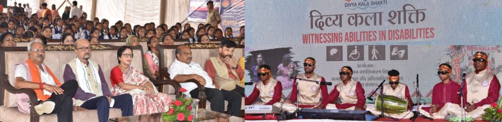 रायपुर, /राज्यपाल श्री रमेन डेका के मुख्य आतिथ्य में आज यहां ‘दिव्य कला शक्ति‘ कार्यक्रम संपन्न हुआ। जिसमे दिव्यांगजनों ने अपनी कला प्रतिभा का प्रदर्शन किया। इस अवसर पर राज्य की प्रथम महिला श्रीमती रानी डेका काकोटी, रायपुर के सांसद श्री बृजमोहन अग्रवाल सहित जनप्रतिनिधि एवं पूरे देश से आये दिव्यांग उद्यमी एवं कलाकार उपस्थित थे।