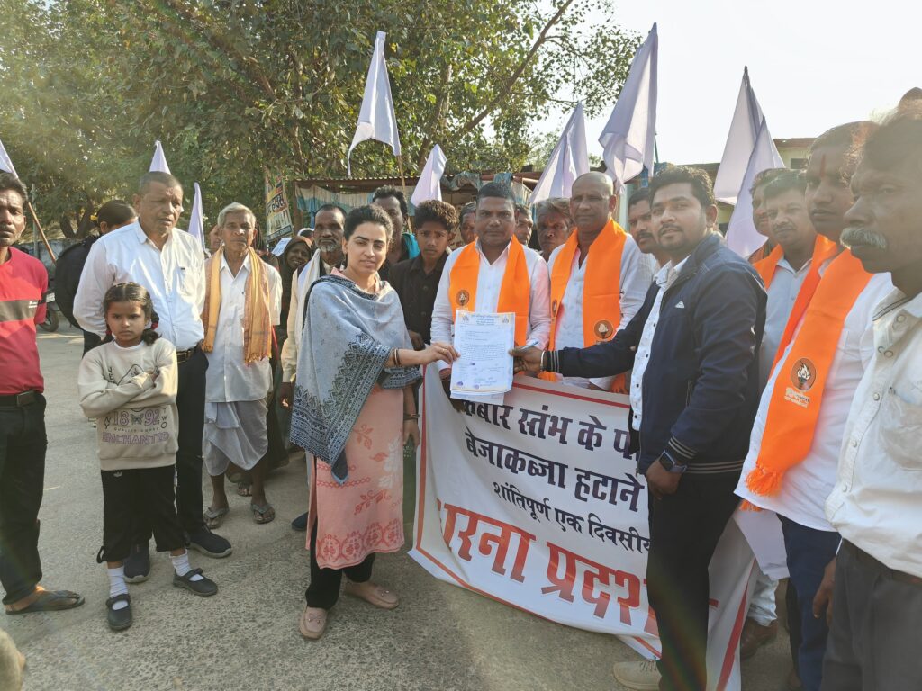 मनोज साहू ब्यूरो जांजगीर चांपा :-कबीर स्तंभ जो मानिकपुरी पनिका समाज के धार्मिक और सांस्कृतिक पहचान का प्रतीक है और मानिकपुरी पनिका समाज द्वारा संत कबीर में आस्था है, कबीर स्तंभ के पास सुखसागर दास उर्फ बिहारी दास द्वारा अवैध रूप से कब्जा किया गया है, जिसकी शिक़ायत पूर्व में भी कई बार सामाजिक लोगो के द्वारा की गई थी और कार्यवाही की मांग की गई थी किंतु प्रशासन द्वारा अब तक कोई कार्यवाही नहीं किए जाने से मानिकपुरी पनिका समाज के लोगों में आक्रोश व्याप्त है और अवैध कब्जा पर कार्यवाही की मांग को लेकर एकदिवसीय धरना दिया गया है। साथ ही एक सप्ताह में कार्यवाही नहीं होने पर आंदोलन की चेतावनी दी गई है।