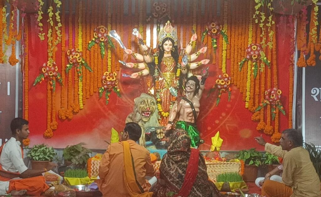 गौरतलब है कि नवरात्रि के पावन अवसर पर प्रबंधन द्वारा कैंप ऑफिस में पिछले सोमवार से भव्य पंडाल निर्माण कर मां दुर्गा की प्रतिमा स्थापित कर प्रतिदिन विधिविदान से पूजन किया जा रहा है।